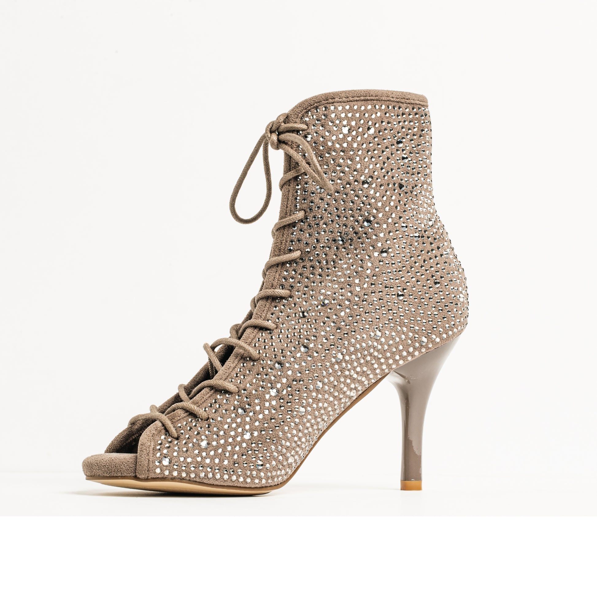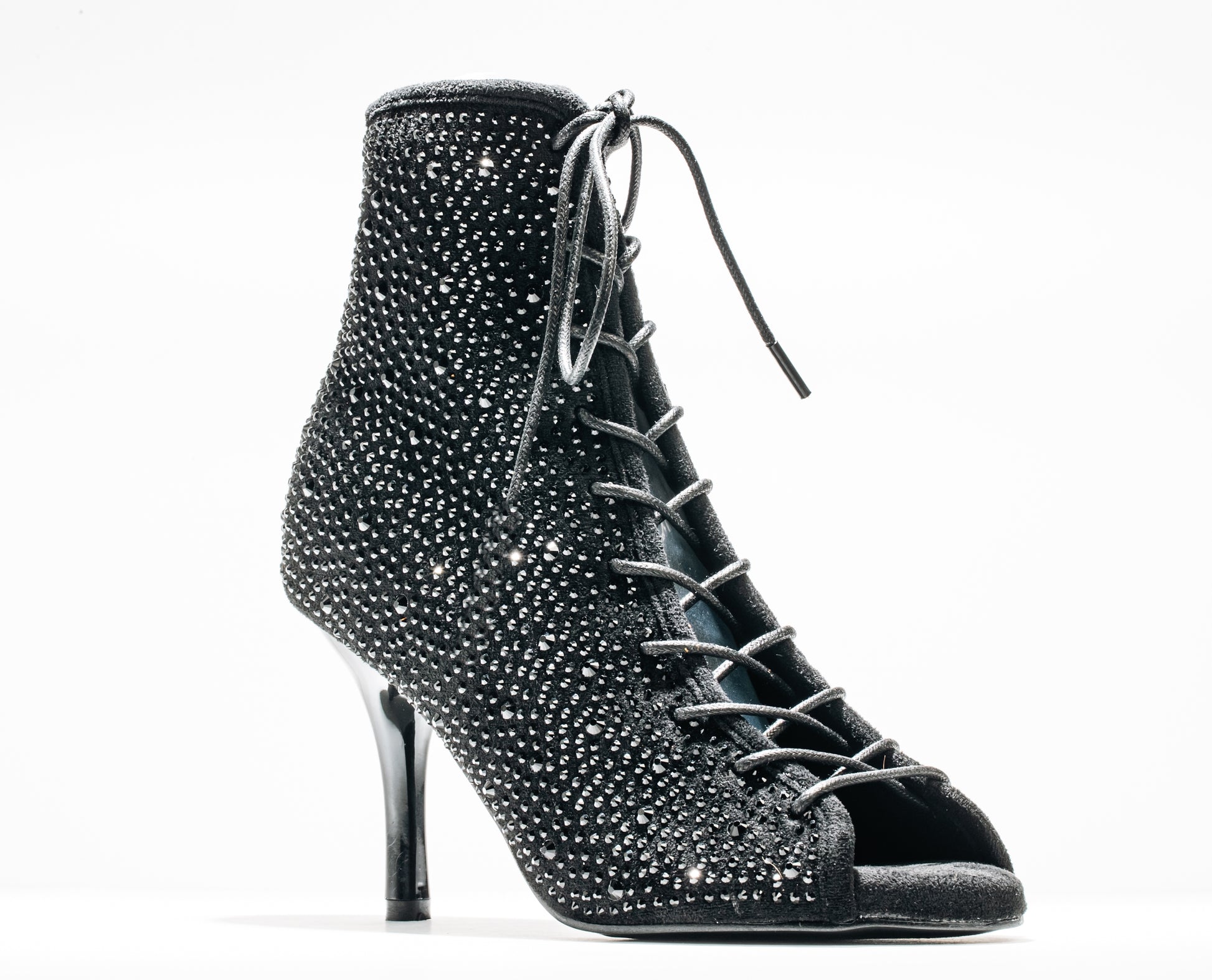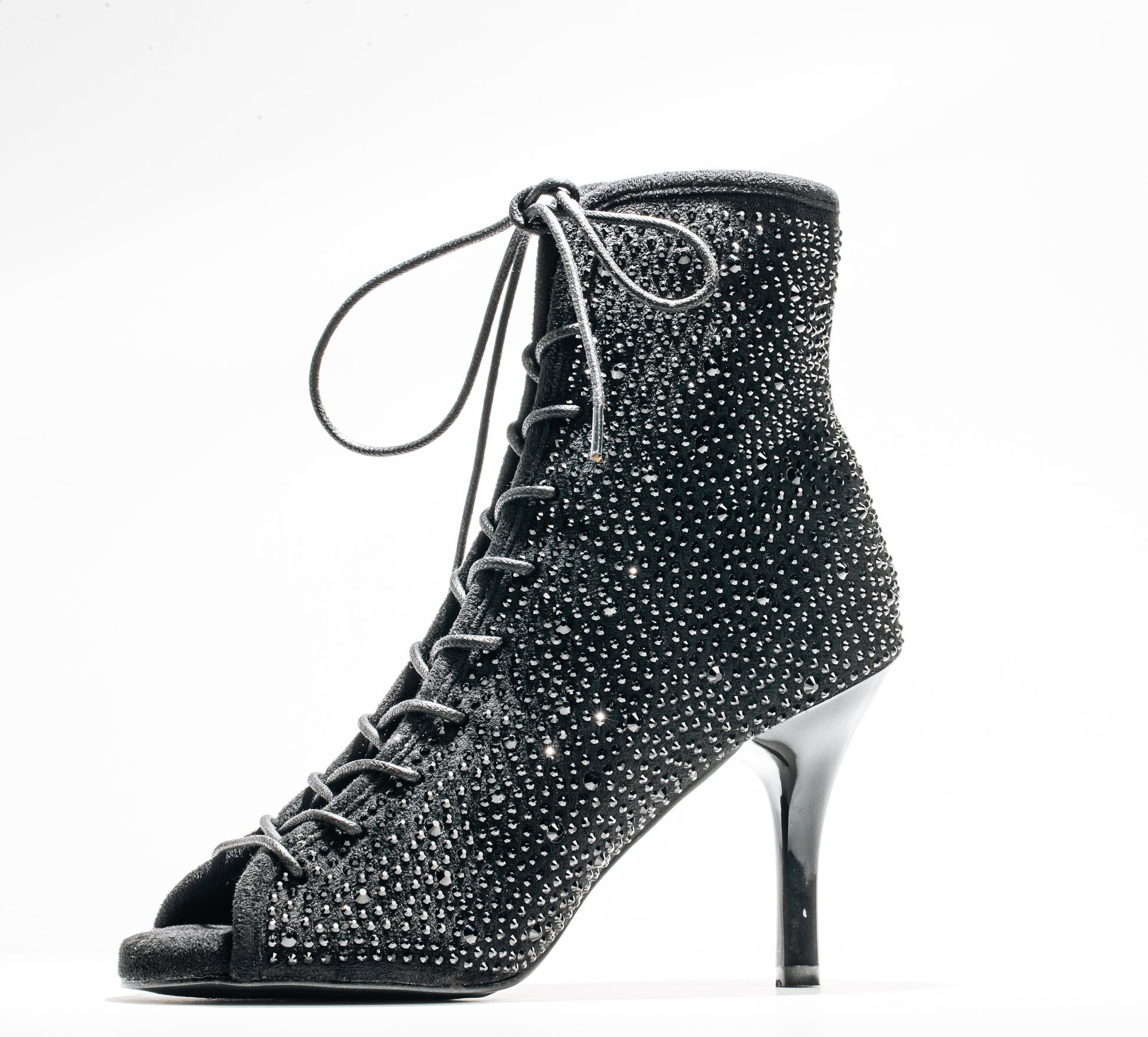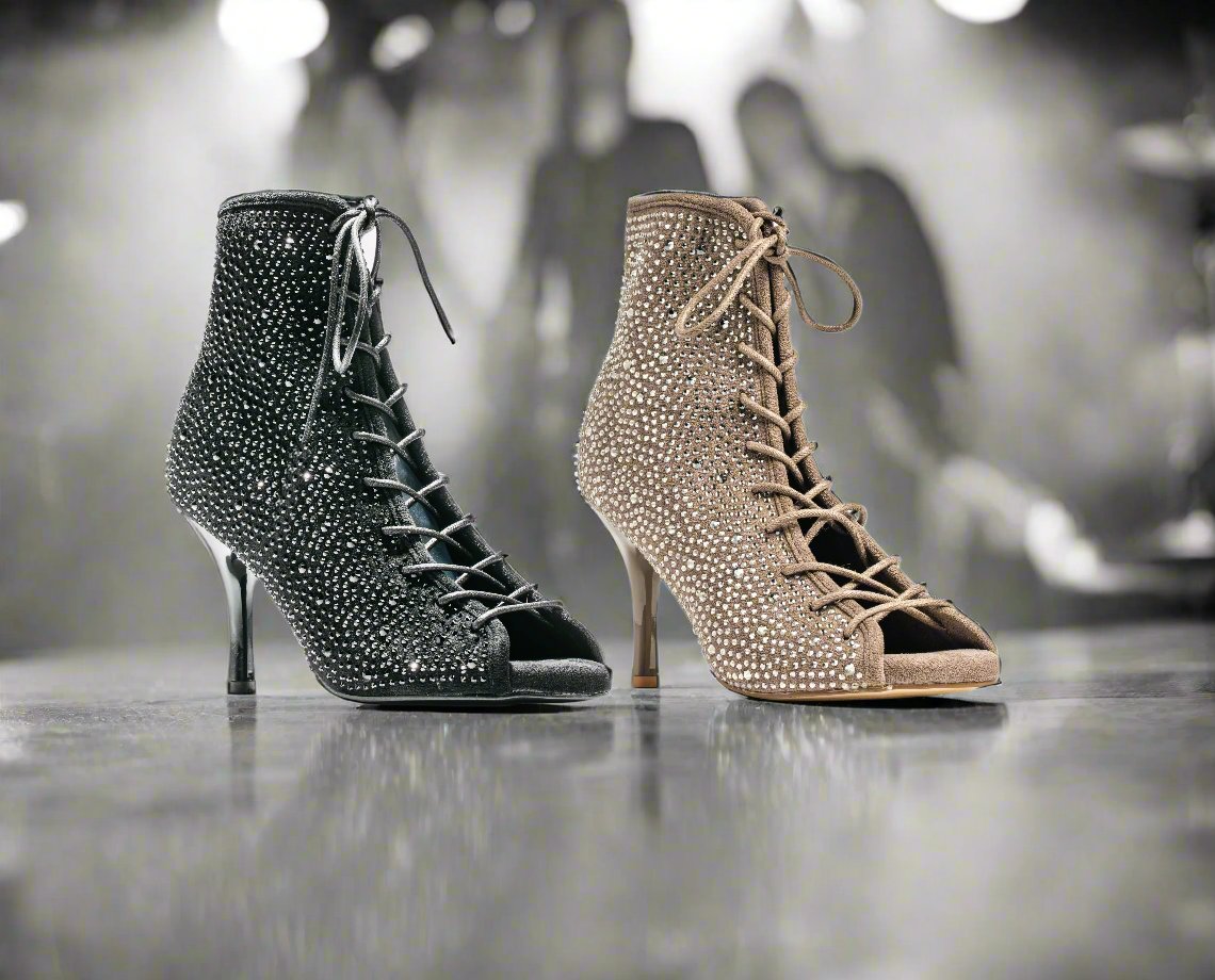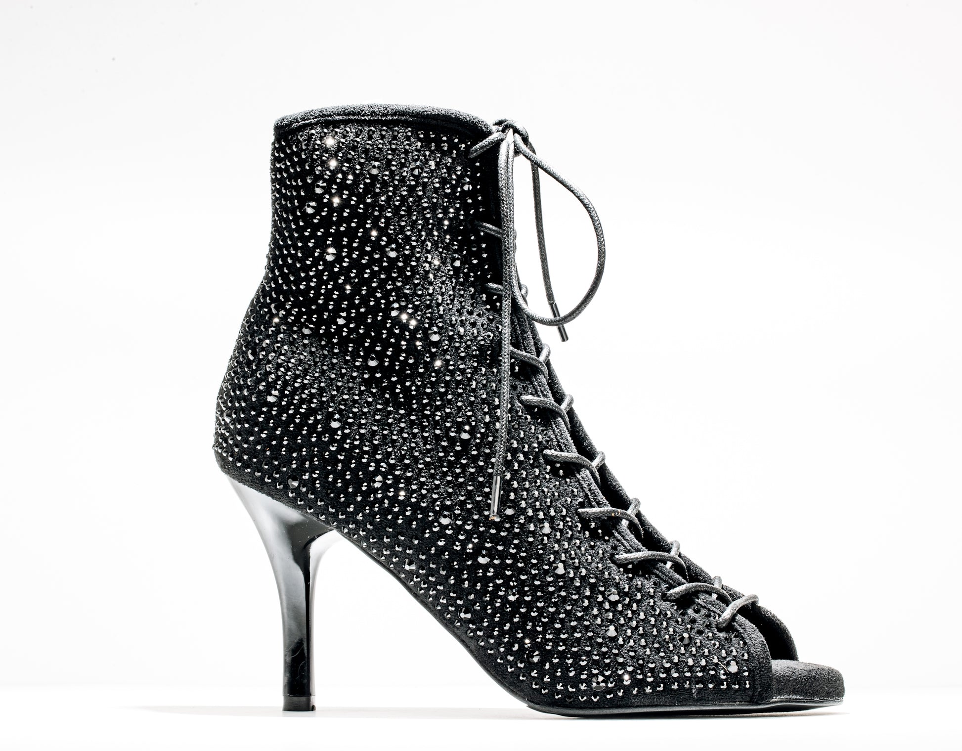 The GFranco Rockstar dance boot model features rhinestone upper and street sole (indoor/outdoor outsole). The Rockstar has an adjustable upper that adjusts to fit different width feet and is made with GFranco's thick padded insole for comfort during long hours of social dancing. This model is available in 3 inch heel.